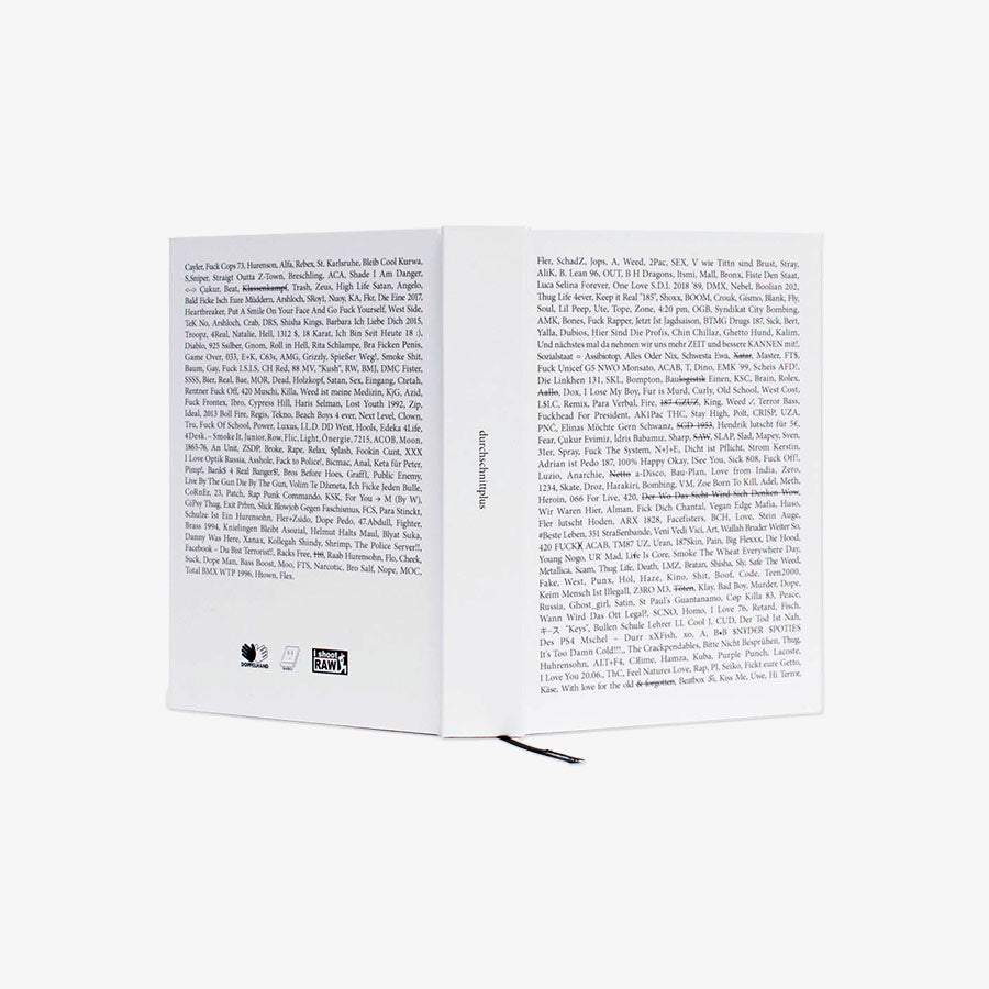 Auf 444 Seiten präsentieren Manuel Sékou und Alexander Theis in „Durchschnittplus“ einen Ausschnitt ihrer archäologischen Sammlung urbaner Zeichen, fotografisch konserviert in den Jahren 2016-2022. Publiziert in einem Hardcover-Buch, changieren die visuellen Fundstücke zwischen naiver Impulshaftigkeit und Genialität.