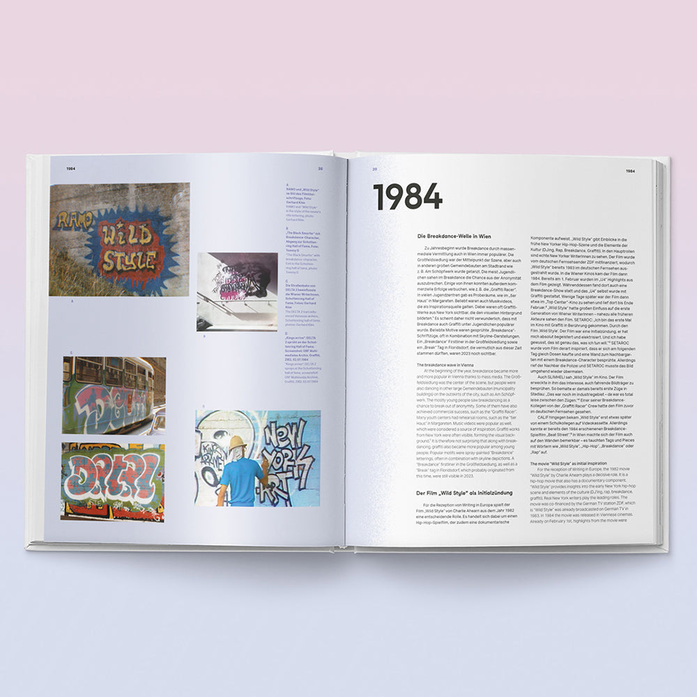 272 pages over 1000 photos Text in German and English The story of an urban art movement A comprehensive and authentic portrait of the graffiti scene in Vienna Graffiti is omnipresent in Vienna. They adorn walls, bridges and trains. But what is behind this urban art form? The book series "Graffiti Wien" presents the approximately 40-year history of the graffiti writing movement in the Austrian capital. The authors have carefully collected, structured and selected thousands of photos and information. The first volume of the series covers the period from 1984 to 1999. During this time, graffiti in Vienna developed from a marginal phenomenon to a recognized art form. The book sheds light on the beginnings of the graffiti scene in Vienna, its development and its engagement with the public. But the roots of graffiti culture go back much further. The authors go on a search for traces back to the 4th century AD. The book series "Graffiti Wien" is a comprehensive and detailed representation of graffiti culture in Vienna and a must-see for anyone interested in this vibrant art form.