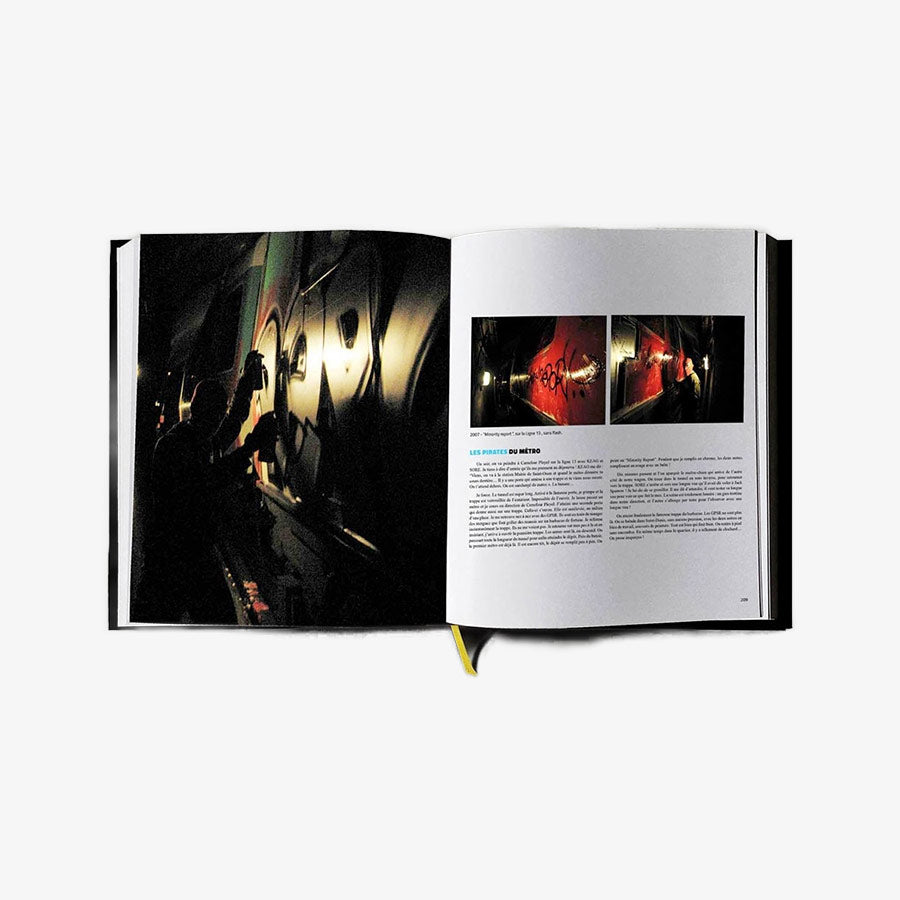 “Rock The Law” illustrates HOME’s (SDE) Graffiti years, from the mid-90s to the present day, of which he is one of the most discreet players. HOME opens up his archives and gives an uncompromising account of his graffiti production in the Paris region. From the twelfth arrondissement of Paris to Vitry, from Maisons Alfort to Orléans, the book chronologically retraces a dense and illegal career. Thanks to an enormous amount of unpublished archive work, including some photos that breathe the atmosphere of the time, immerse yourself in the creative process and philosophy behind HOME’s pieces. All accompanied by the testimonials of those who worked with him and painted with him. Collaborators: Zie, Comer, Lenz, Ekla, Babs, Jezy, Zenoy, Yeamd, Flp, Keag, Sore, Junky, Ecraz, Pseye, Azyle, Conect, Yome, Sezam, Uzi, Cost, Jeyz, Vesty and others…
