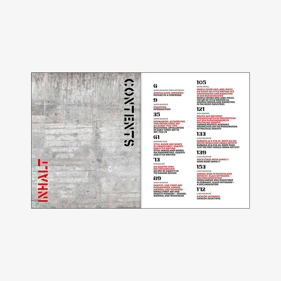 A.R.Penck | Alex Vallauri | Bando | Banksy | Barbara 62/Eva 62 | Blek le Rat | Brassaï | Martha Cooper | Christo/Jeanne-Claude | Daniel Buren | Daze | Harald Naegeli | Ernest-Pignon-Ernest | Jane Bauman | Jérôme Mesnager | Jill Posener | Jiri Dokupil | Jenny Holzer | Keith Haring | Lee Quinones | Marcus Krips | Quik | Richard Hambleton | SAMO© [Jean-Michel Basquiat & Al Diaz | SONER | Gee Vaucher / Crass | David Wojnarowicz | Walter Dahn | Gerard Zlotykamien u. a.