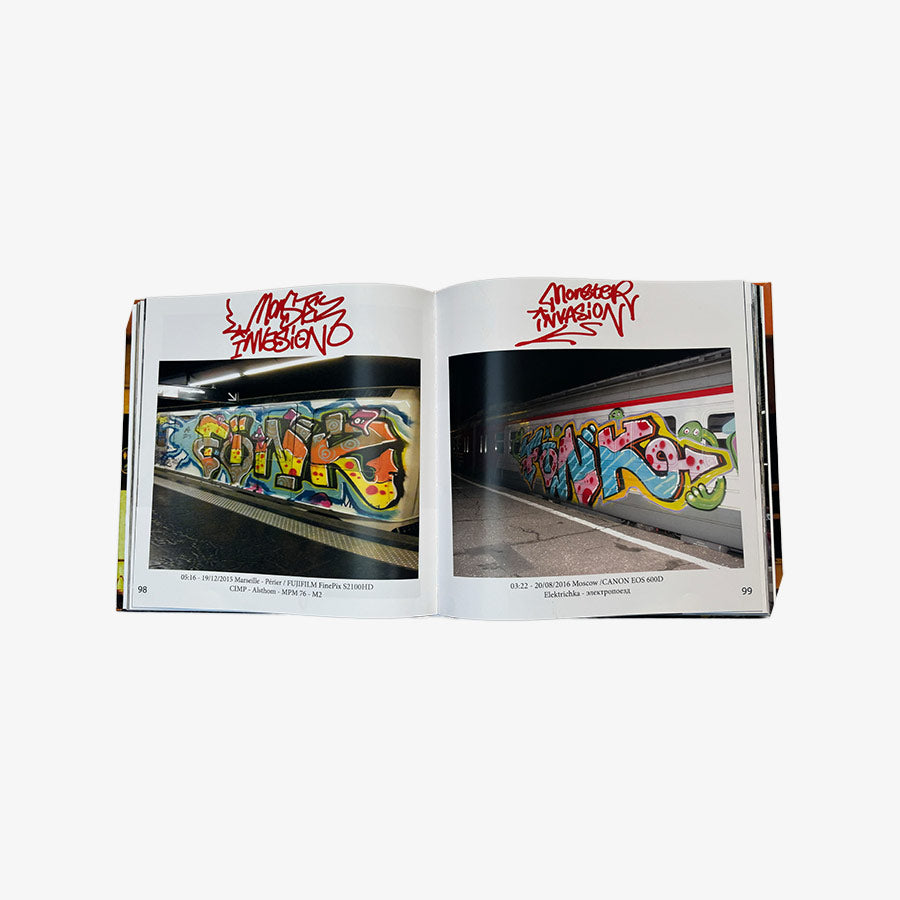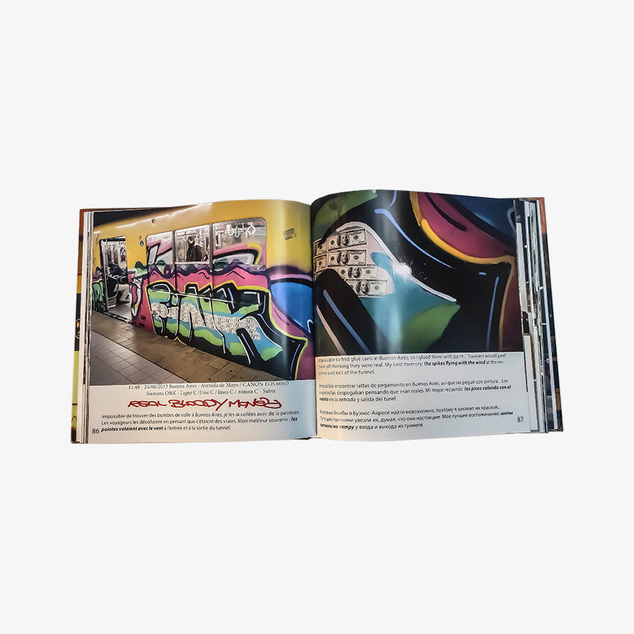 After more than 20 years of painting trains, FINK is honored to present his first book. It is a selection of paintings on trains and subways, featuring characters as well as "special panels." You will discover different beautiful train models from France, Germany, the Netherlands, Belgium, Italy, Spain, Portugal, Romania, Russia, Argentina, Chile, and Bolivia. This book is a true tribute to his influences. It contains over 170 photos, accompanied by the times, dates, locations, and cameras used, as well as anecdotes and descriptions.