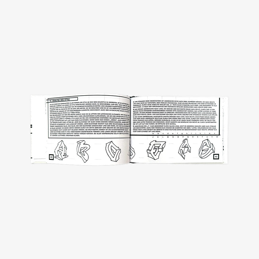 Theorie des Style was a book which originally got published to the occasion of the A Tribute to Style exhibition near Munich in 1996. 13 years after graffiti writing travelled from New York to the world Munich was one of the metropolises of stylewriting. CHEECH H and TECHNO169 (STONE), both writers from the first generation, did exchange letters and thoughts on style already for years at that point. Together with SCUM (CEMNOZ) they published the first in-depth analysis of letter forms, stylewriting, and its origins.