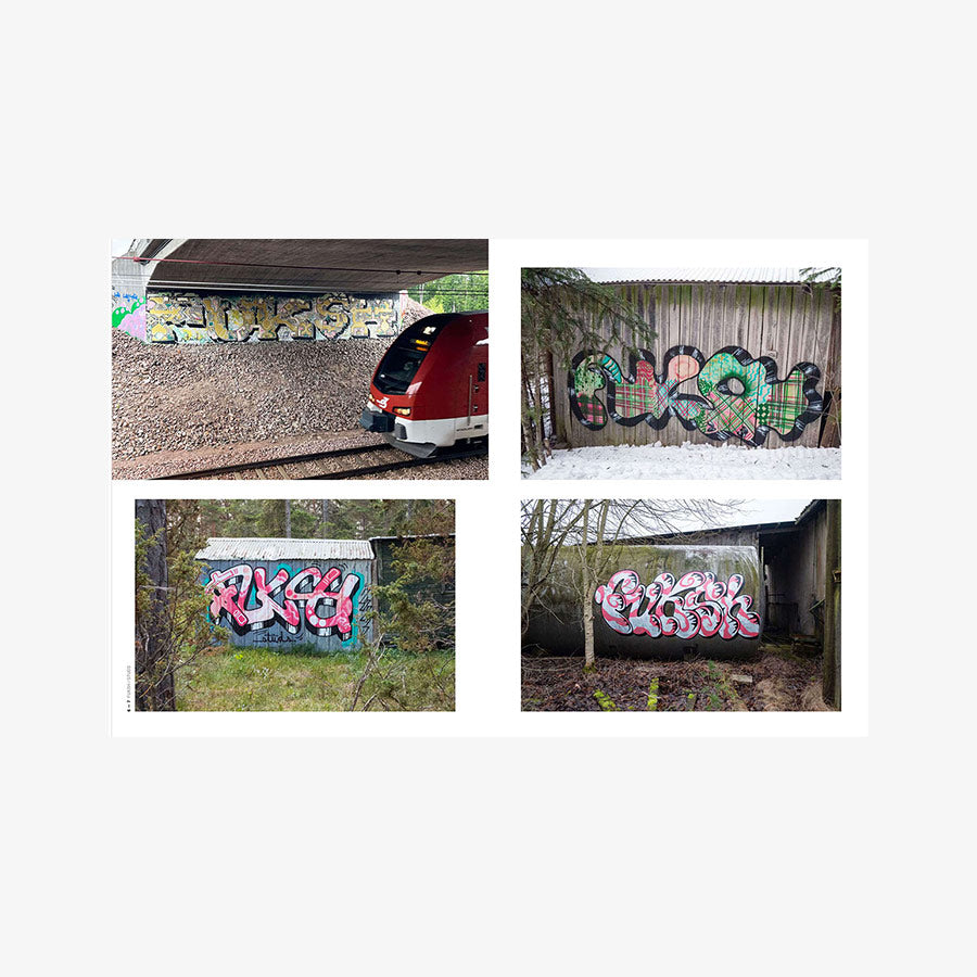 Studio Stains is back at it again with a second volume of Till fikat. Once again containing a solid Swedish line up featuring 17 writers in tota, all given 6 pages dedicated to their name. A fresh variety of both styles and surfaces, spread out in a minimalistic layout presented on offset inlay, soft glossy cover, wrapped up and sealed – premium package and feel in other words! Till fikat volume 2 participants are no less than Fuksh (STUDS), Code26 (PHS ÖRN), Roxes (CWD UUK), Blip, Lokee (PUBBS), Waffle (WLC MOLL), Bams (TPX BK FY), Lars (ACES), Nisk & Snok (TRC BRO 1000 PUNKS), Lurk (SG MH ELIT), Mest (FCB), Jerka (GHS), Tool Da Fool (JNR), Hill (RNA HEJ FOR BFF), Nick (WUFC TPG JAZZ) and Fits (FAME) Pour your self a big cup of coffee, it’s fika time!