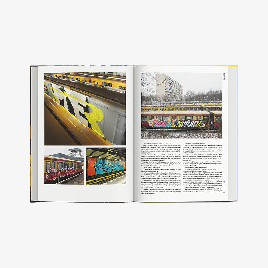 There are also mixed chapters in the book, which show the development of many other graffiti writers and crews in this decade with hundreds of photos. Berlin's graffiti in the 10s was characterized by the influx of many writers from all parts of the world. Berlin has also developed into the place to be and a world metropolis, especially for graffiti on trains. This is largely due to the fact that painted subways ran more and more from 2010 onwards and at the end of the decade "the system was blown up". New techniques and competition among writers, which was stimulated even more by the visibility of the subway graffiti, increased the quality of the execution of the pieces. At the same time, the documentation of graffiti has increased immensely and gained in professionalism. Due to these many different sub-areas in the development history 2010–2020, there was an extremely large amount of material to process in the third volume, making it perhaps the most diverse edition of the DECADES series.