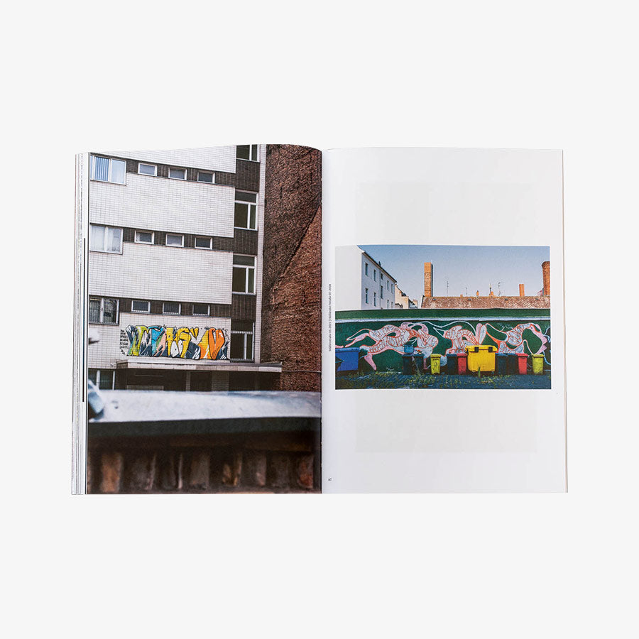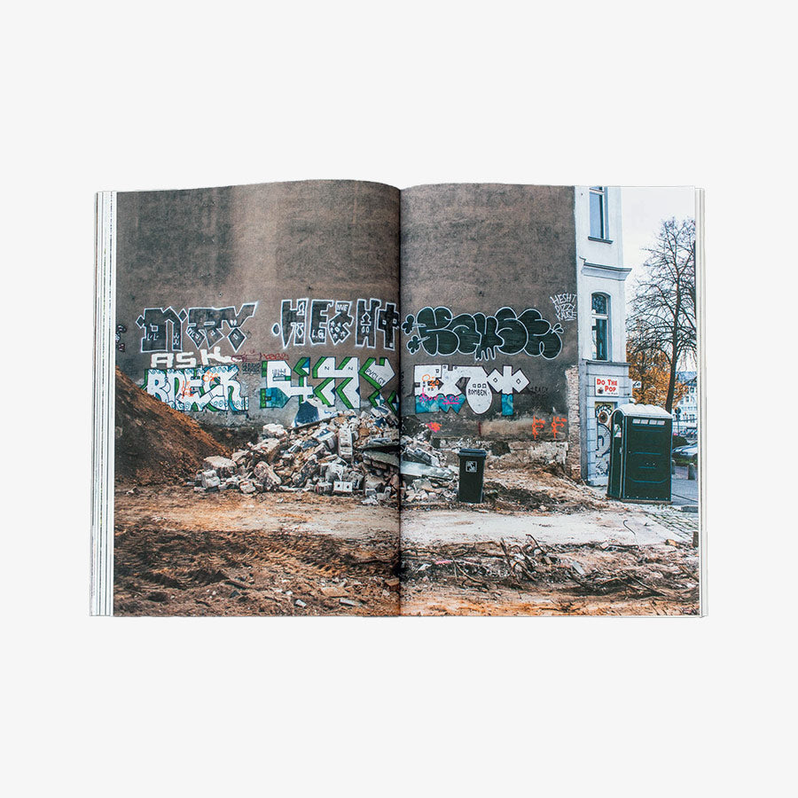 Through the past 14 years Emmett Edelstein did visit countless of these spots and captured writers traces in his unique photographic style. The Hinterhof magazine invites us to join his explorations while each photo comes with the street name as well as the month and year when it has been taken. The 100-paged softcover is accompanied by five poems from Stefan Wartenberg and a text by THAKI68. Featured writers are EXOT, CAUSE, 2PAC, LOFK, AKIM, KLOPS, TECHR, ROGER, ROZER, MAGIC, CLINT176, MIKADO, IGIT, BLUFF152, BUS126, EHSO, MR.IX, FISO, ZAUER, PEPS, LES MISERABLES, VOKAL, ZASD, THATZ, and many more.