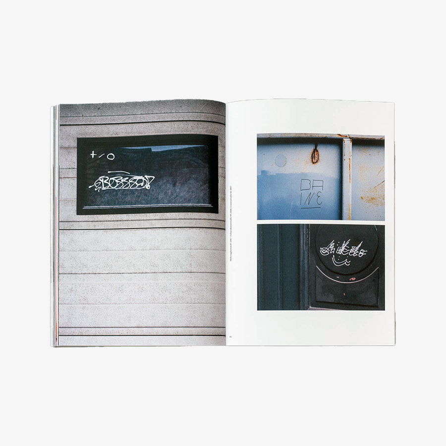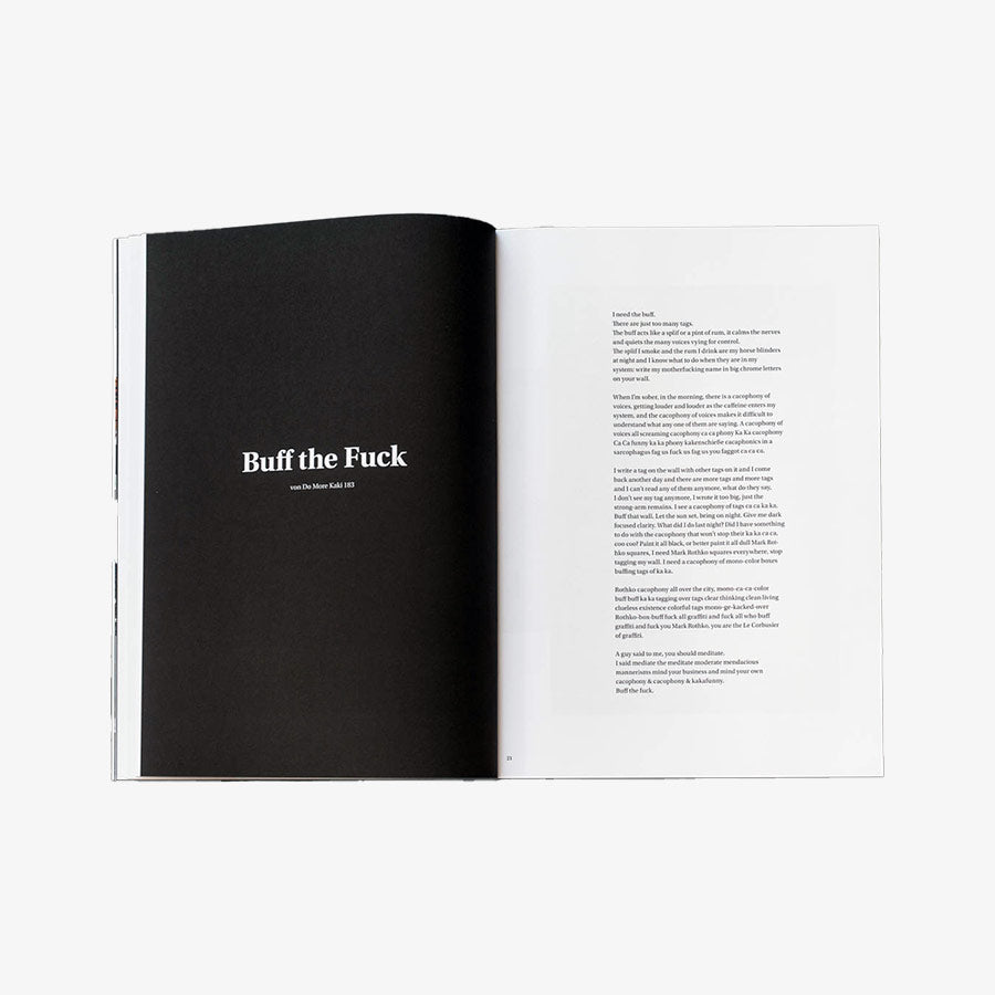 “Rauschen” takes the reader on a stroll through Berlin, stopping at tags and places which stand out from the perpetual flow of tags you go on with as you walk the city. Emmett Edelstein picked out his personal selection of interesting writers and places in which their work appear. His unique photographs capture tags on walls, doors, shutters, in backyards, hallways, etc. both in the streets and in abandoned places of the city.