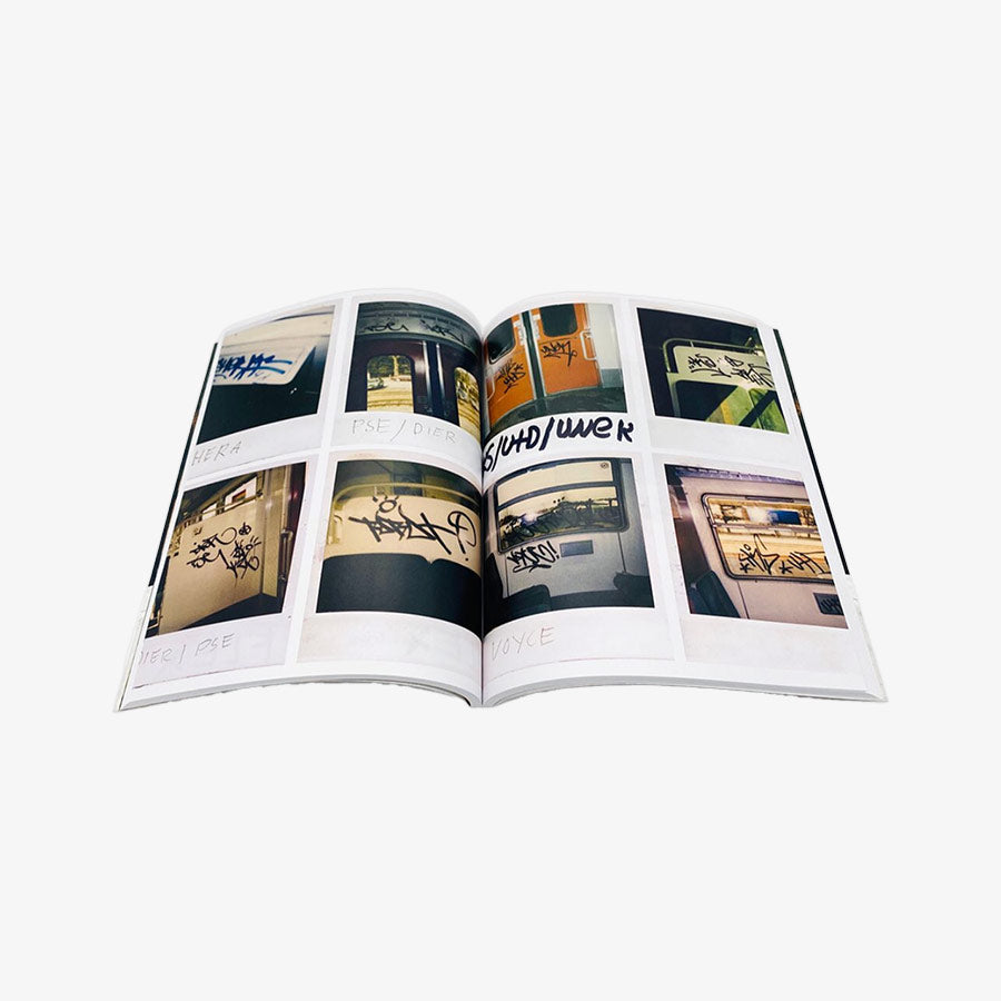 In the late 90s, a strange guy armed with a Polaroid camera turned up at Munich's S-Bahn stations. His name was Eddie. Why was he taking pictures with a Polaroid camera of all things? Well, he found this camera at home with his parents, even back then a relic from days gone by. Although the format was unsuitable for panels or Wholecars, Eddie held on to this technique, fueled by pure passion. His drive to photograph came from punk music and the influence of his older brother, who had started documenting Sponti slogans with the Polaroid in the 90s. Around 1997, Eddie discovered his passion for graffiti. As he lived a bit out of town, he noticed the pictures on and in the trains on his regular journeys on the Regios and S-Bahn trains. Without further thought, he began to capture them with his parents' Polaroid camera. His childhood bedroom became the archive of his passion. Stacks of Polaroids lay around, and whenever he could, he organized them. Whenever he could read the styles or assign them to the corresponding writers, he labeled them with their respective names. Eddie became a strange phenomenon of the time. Everyone seemed to know him, but nobody ever really had contact with him. Thanks to a diversion, which we owe to Kubik, ASC, we have obtained the original Polaroids and would like to share them with you. The result is a kind of analog Instagram from the late 90s, a time capsule full of colorful graffiti captured through Eddie's eyes. 184 Pages Size: 16,8 x 24 cm Offset printed Edition of 200 Language: German & English