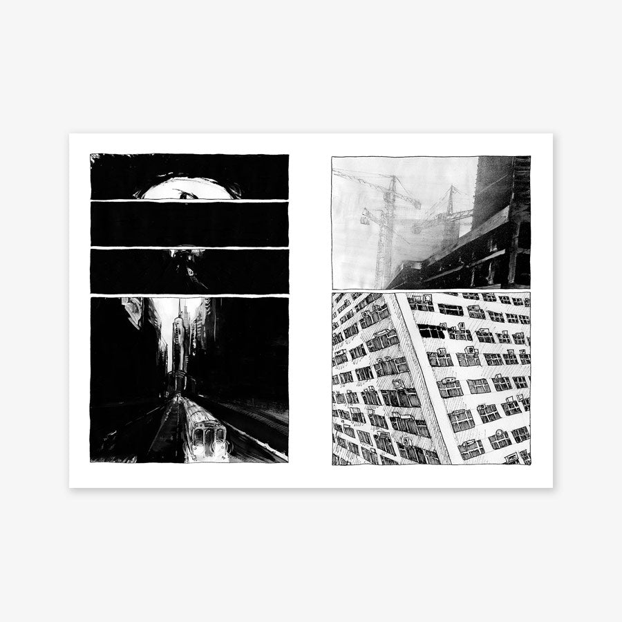In hartem, virtuosen Schwarz-Weiß zeichnet Rubens Bugatti eine Geschichte von nächtlichen Streifzügen. Es geht um das Getrieben-Sein zur Aneignung urbaner Nicht-Orte und die Auseinandersetzung mit den langen Armen des Gesetzes, subsumiert in verschiedenen Episoden dieser Graphic Novel.