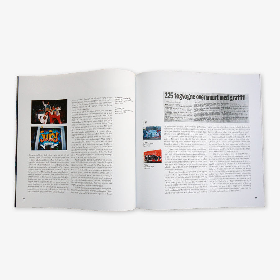 Dies ist der Ausstellungskatalog „Graffiti København 1984-2019“, die im Sommer 2019 in der Øksnehallen in der Nähe des Kopenhagener Hauptbahnhofs in Dänemark stattfand. Der Katalog umfasst 52 Seiten mit Texten und Bildern zur Geschichte von Graffiti in Kopenhagen.