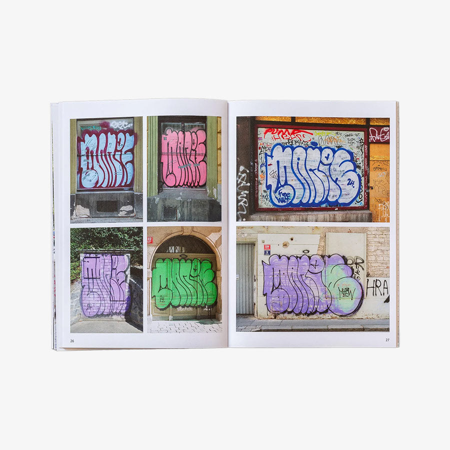 Tags and throw-ups by omnipresent inhabitants like VERY9, MARIO, TYPHO, OIPSE, FYDO, MIOW, MANIE, PAOO, DEEBO or EBAY followed him seemingly everywhere. In crowded shopping streets, small pedestrian zones, or alongside the town’s tram lines: The Prague scene is alive! The 68-paged zine captures countless traces local writers and globetrotters left in Prague along typical tourist routes throughout the city.