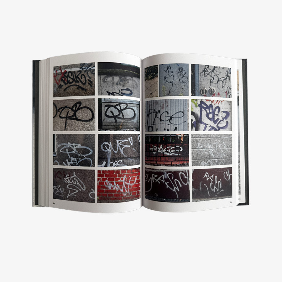 This might also be the reason why the style how letters were executed back then is unique and eye-catching. Even today it is possible to recognize a typical Berlin 90s tag aesthetic. On 216 pages the hardcover compiles almost 1200 tags that were documented in between 2005 and 2010. In alphabetical order the viewer is able to enjoy mostly spray paint handstyles by well known writers like LEVEL, AKUT, BAS2, AAM, ZEAL, RASTA or OXBOE. But the book’s focus are also names which up to now are not represented in publications on the Berlin scene like TAXIE, BRAIN, LEMONE, ZICKE (†), AUE, DEY, COMET, GUS, ZERO, SCENE, HEMA, DRUG, ASCY and many more.