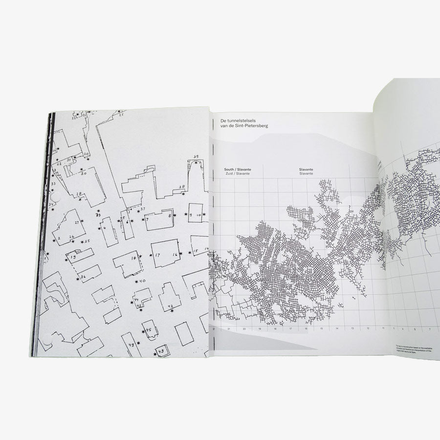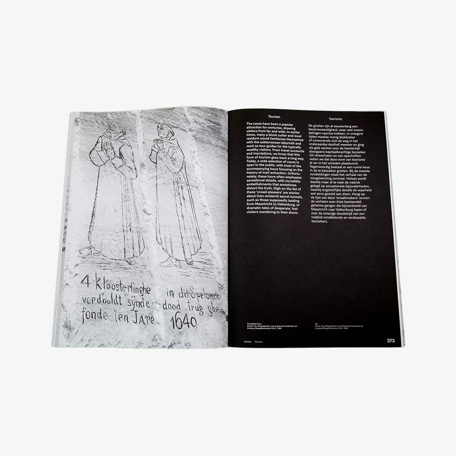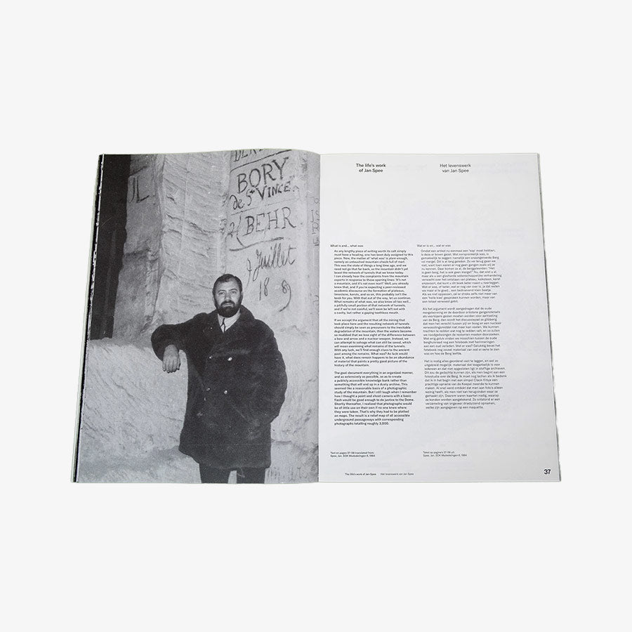 The Mountain’s Breath (De Adem van de Berg) is a comprehensive and diverse account of the labyrinth under the Sint-Pietersberg. It mimics a visit inside the mountain with the knowledgeable and articulate Jan Spee as a guide. The book is filled with a multitude of curiosities, which Sven Gerhardt (NL) has compiled to preserve Spee’s cultural-historical and visual observations and make them accessible. The book gives an overview and provides context and cross-references to a large selection of images, interspersed with archival material about life in the quarries.