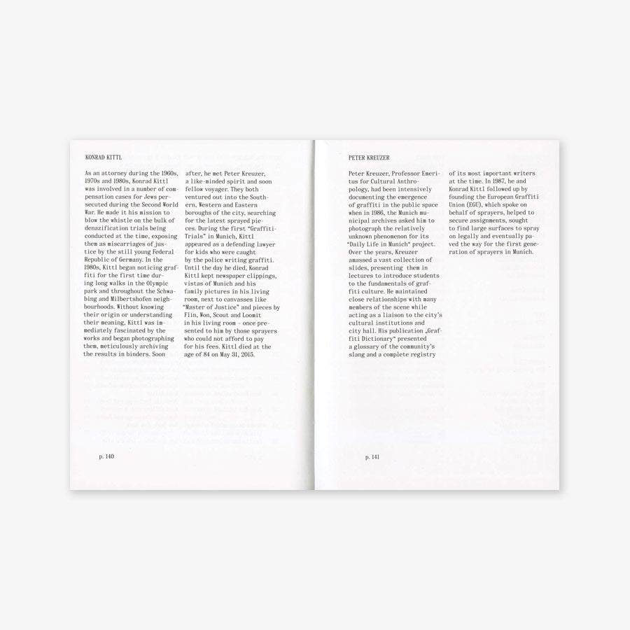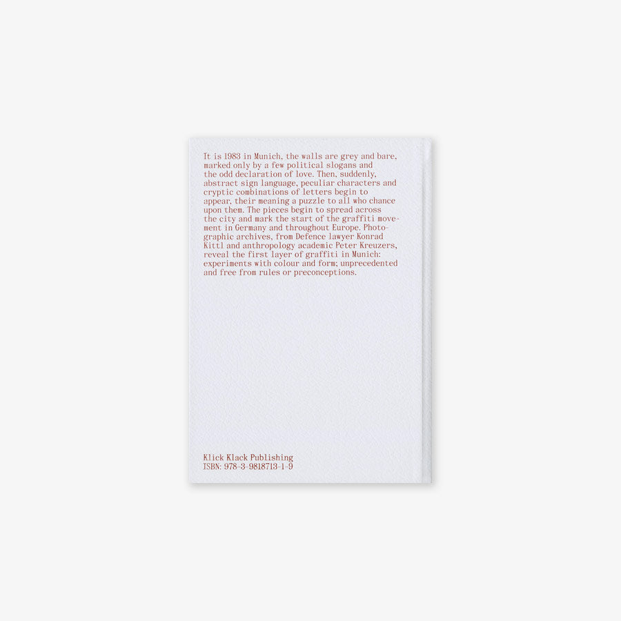 München 1983, die Wände sind unberührt. Politische Sprüche und Liebesbotschaften zieren vereinzelt das Grau. Plötzlich aber tauchen abstrakte Zeichen, seltsame Figuren und kryptische Buchstaben- Kombinationen auf, von denen niemand weiß, was sie bedeuten sollen. Sie verbreiten sich im Stadtbild und markieren den Beginn der Graffiti- Bewegung in Deutschland und Europa. Die Fotografien aus den Archiven des Strafverteidigers Konrad Kittl und des Volkskunde-Professors Peter Kreuzer zeigen die erste Schicht Graffiti in München: Versuche mit Farbe und Form, ohne Vorwissen, Kategorien und Regeln.